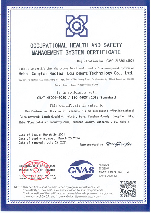 河北滄海職業健康安全管理體系認證證書(英文)